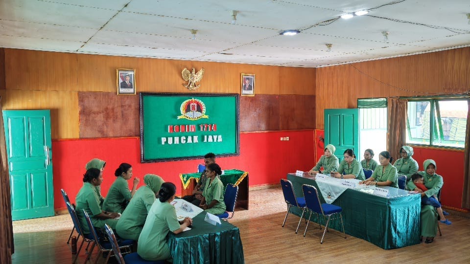 Kegiatan berlangsung tertib di ruangan Aula Makodim, didampingi langsung oleh Ibu-Ibu Pengurus Persit KCK Cab XLI Dim 1714/PJ yang memberikan arahan serta pembinaan kepada para calon istri. Prosesi juga dilanjutkan dengan verifikasi administrasi dan kelengkapan berkas sesuai dengan prosedur yang ditetapkan.